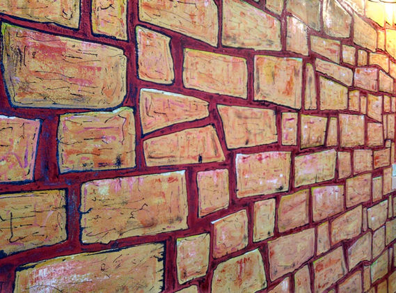 One afternoon, Little Filip asked me if I could paint something "tech", and we came up with the idea of recording a soundwave of "Monkey Toe Guest House". This was then painted on the wall in Abstract fashion.